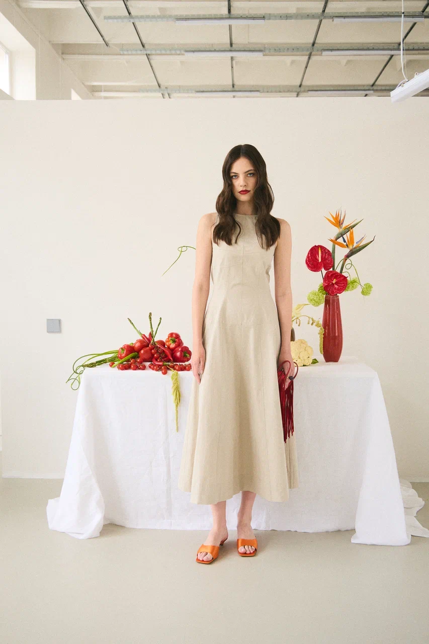 Платье с открытой спиной льняное